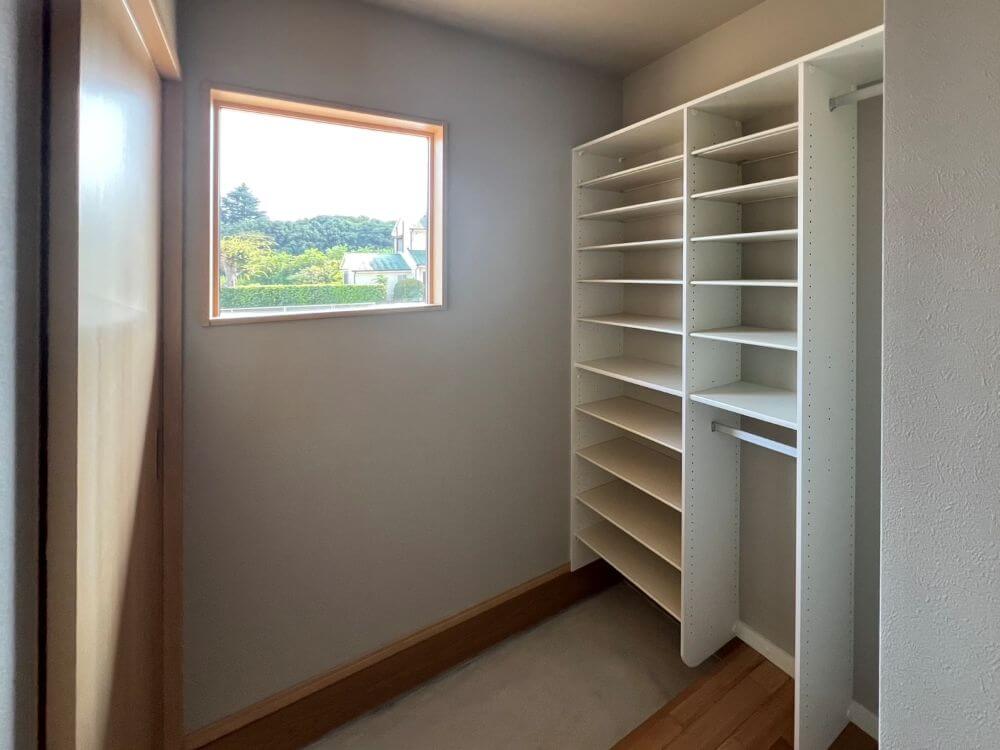 また洗面脱衣室には洗濯コーナーを設け、大きなクローゼットと行き来ができるので
