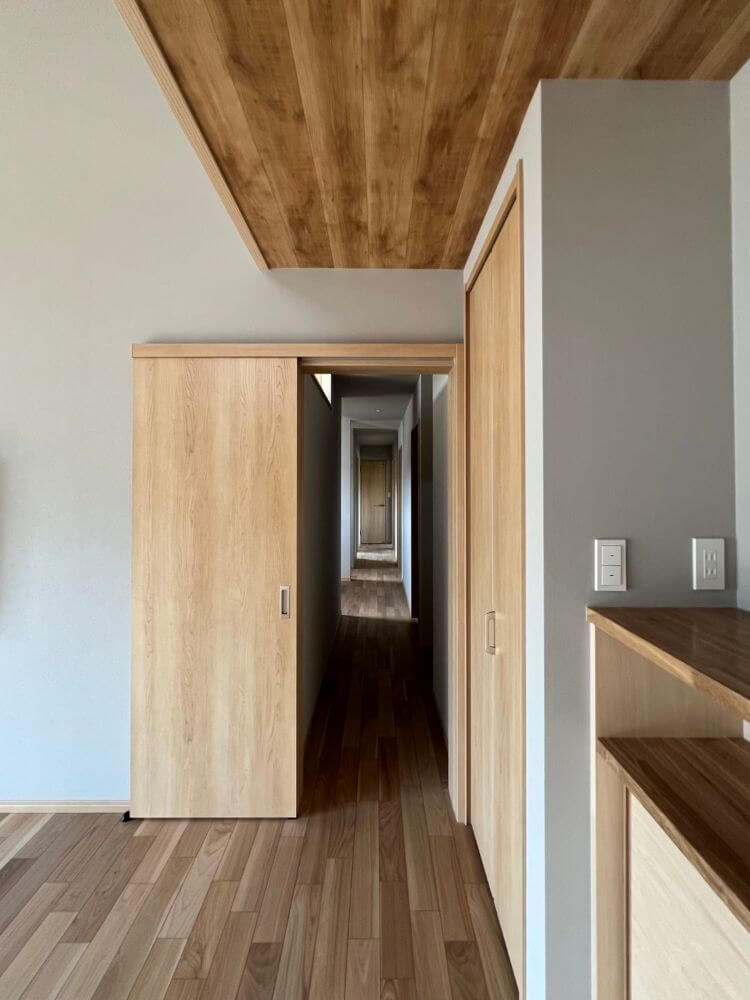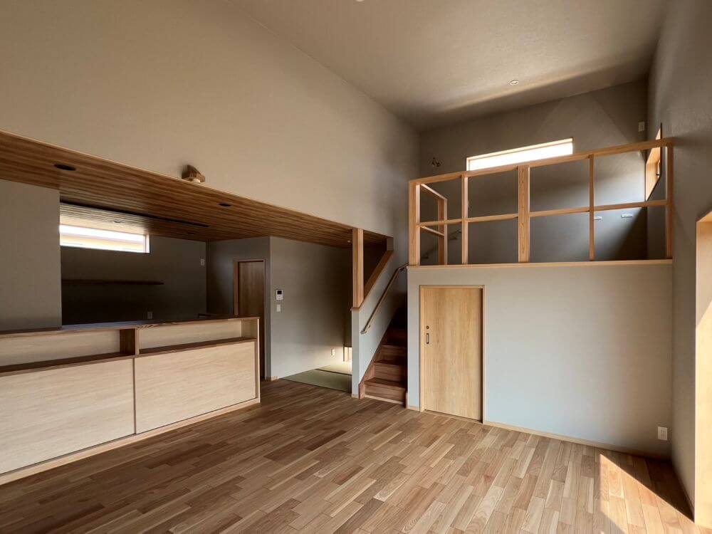 スキップフロアーを採用しフリースペースと書斎を確保しました。